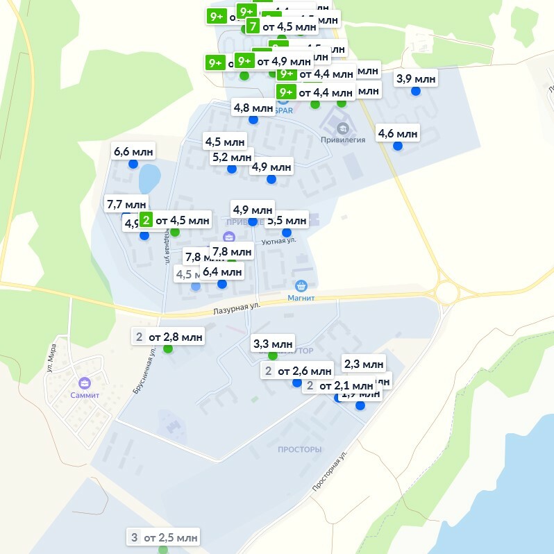 *Рыночная стоимость конкурентных объектов в локации ЖК (конфетти, привилегия, вишневая горка)